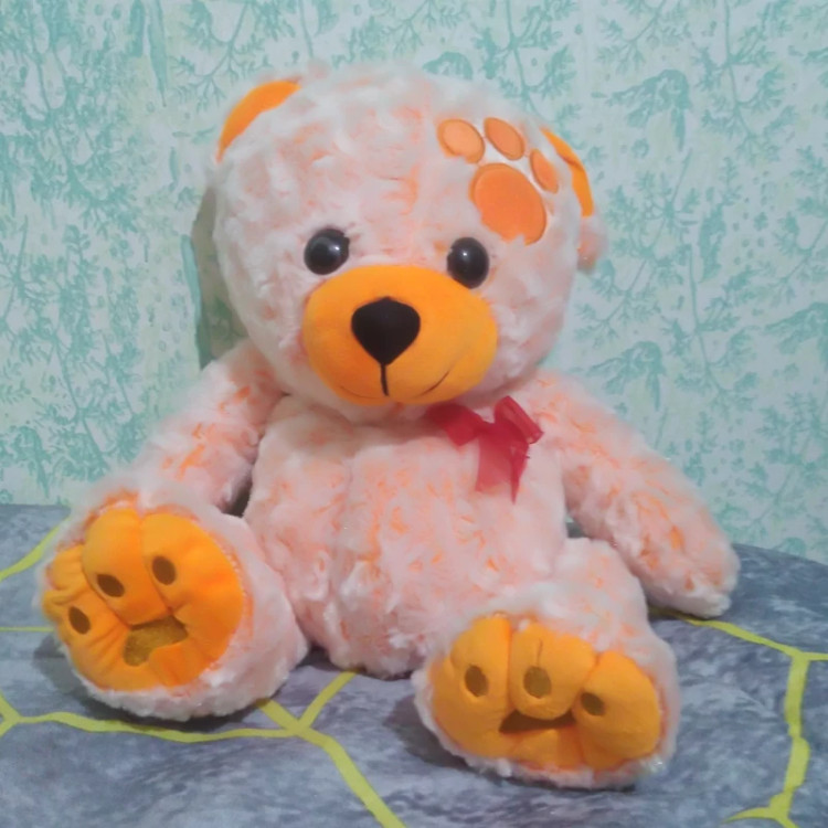خرس نارنجی چاقو خارجی با پارچه ای کاملا نرم و مخملی که به طور بامزه ای روی سرش رد پاست