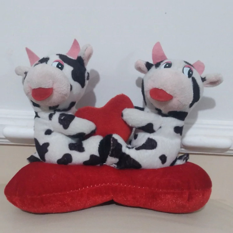 عروسک گاو عاشق بر روی یک قلب بزرگ